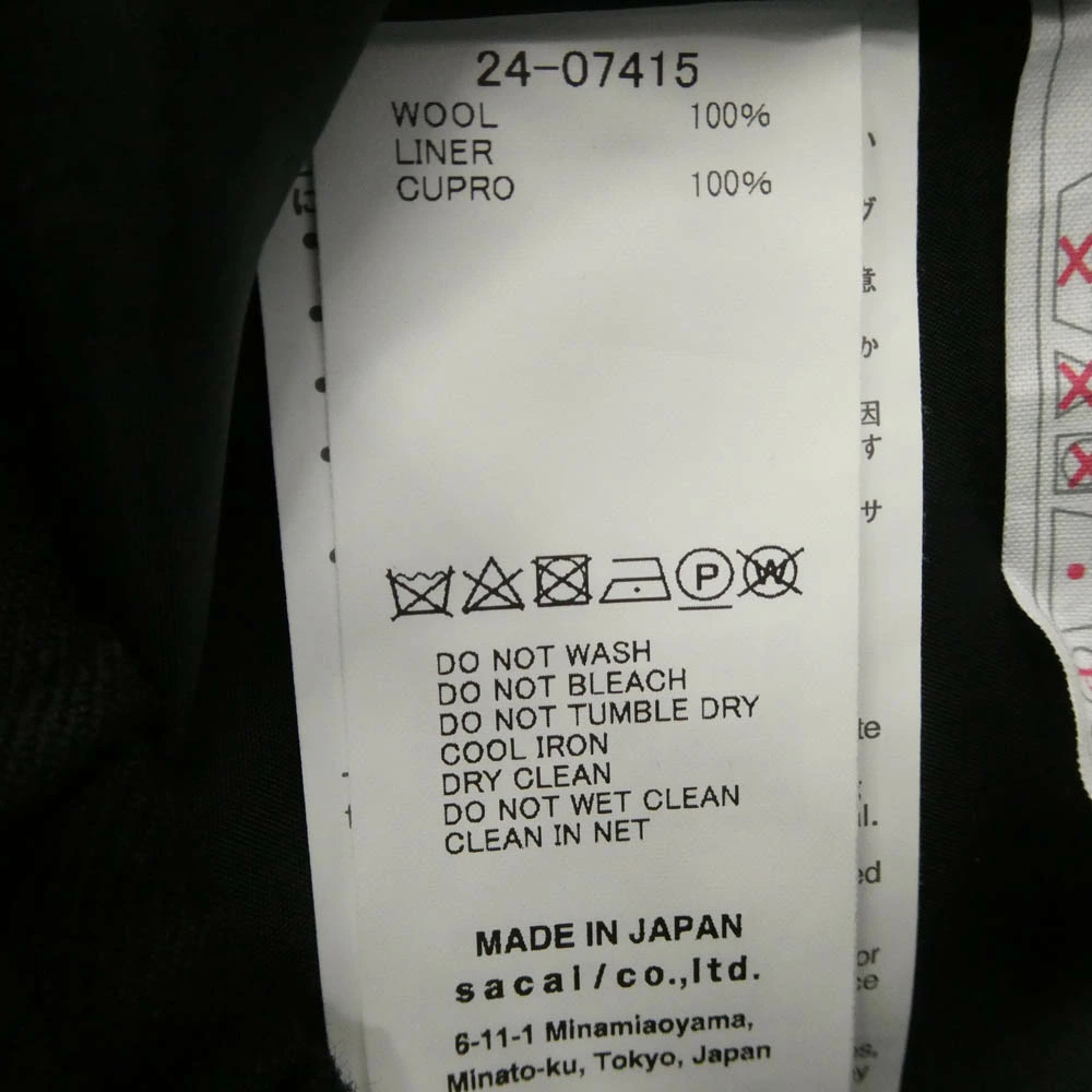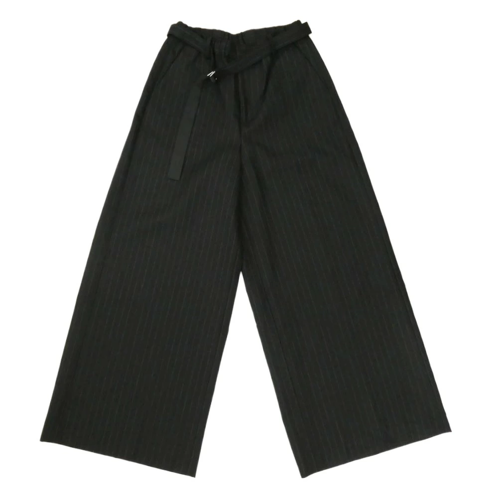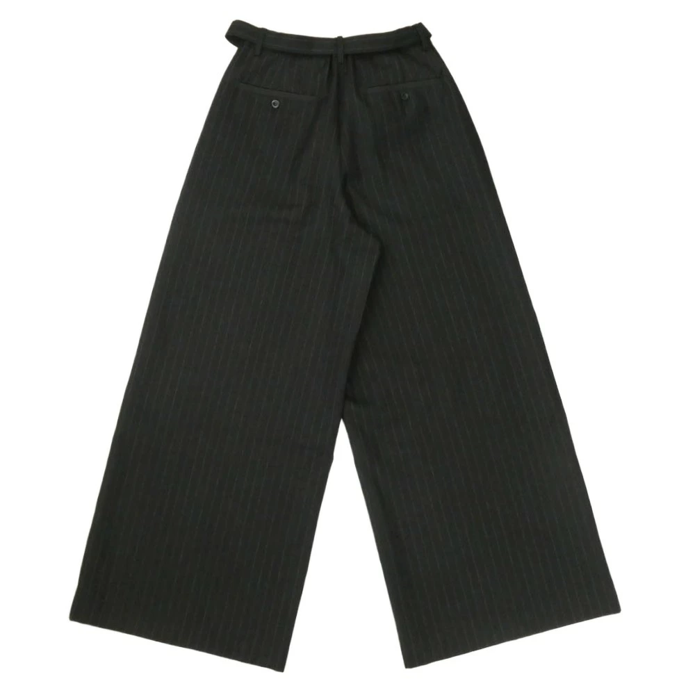 Sacai 24AW Chalk Stripe Pants, Belted Wool Wide Leg Slacks, Black, Size 2, Women's, Pre-owned