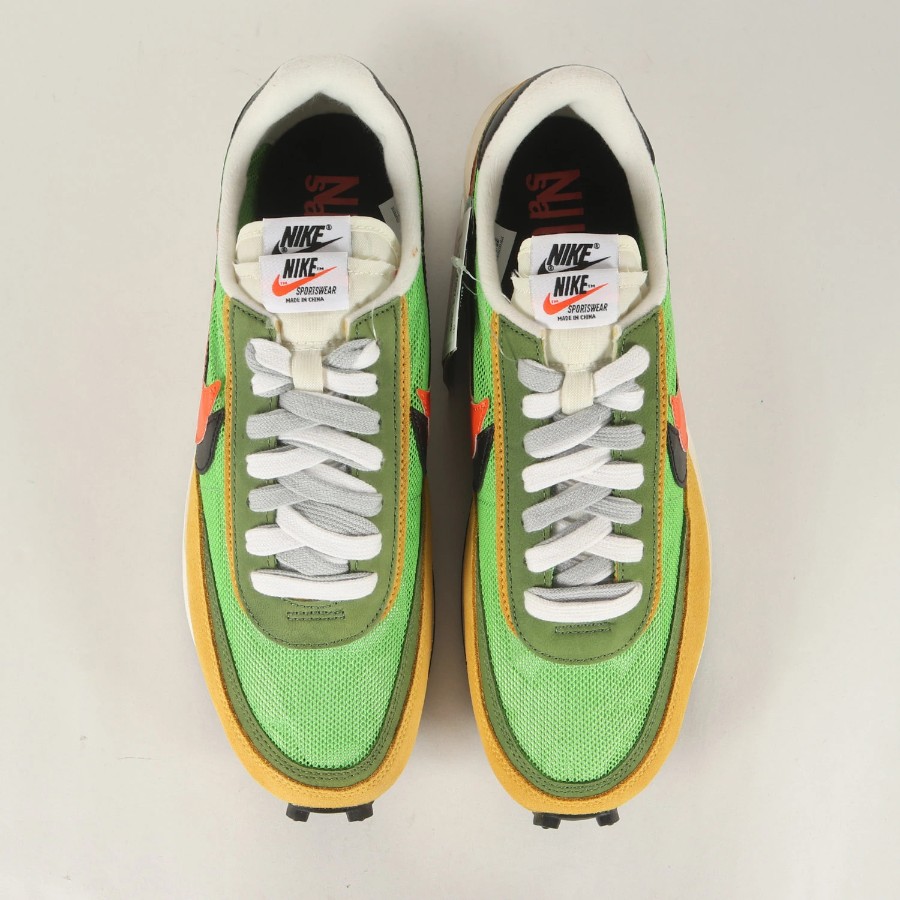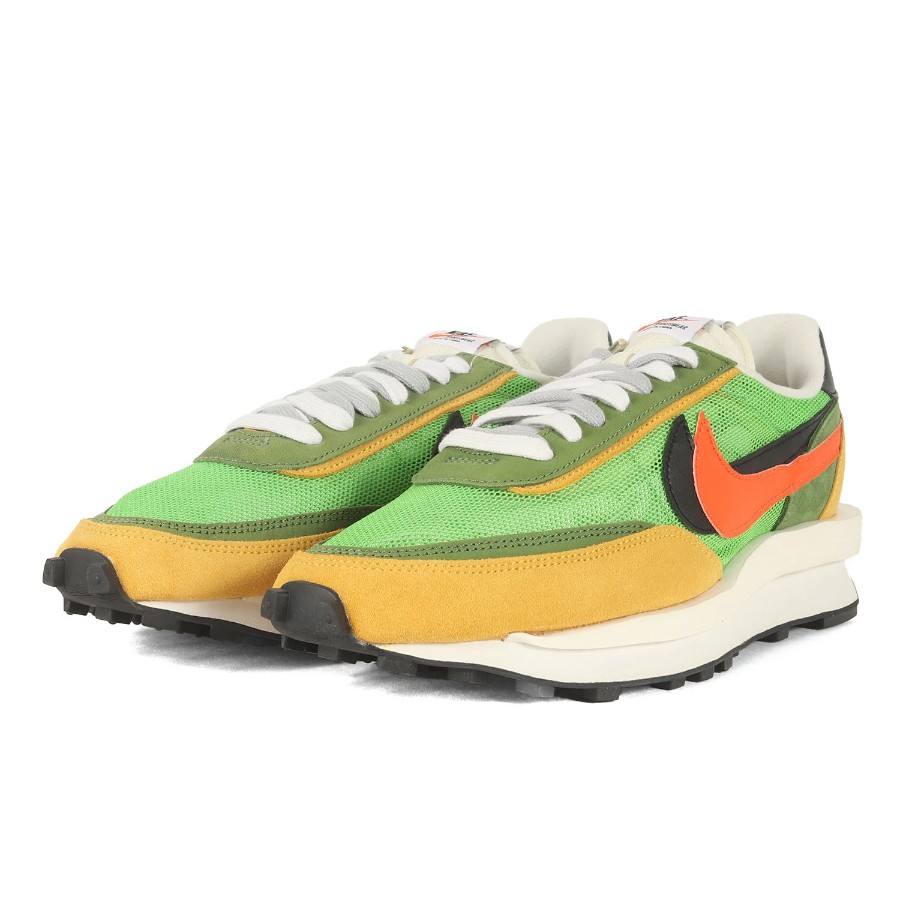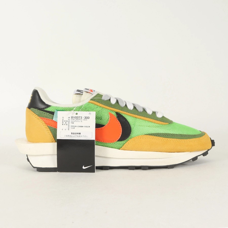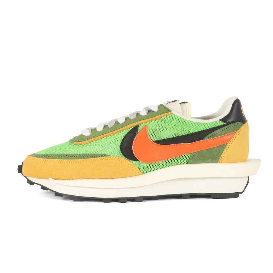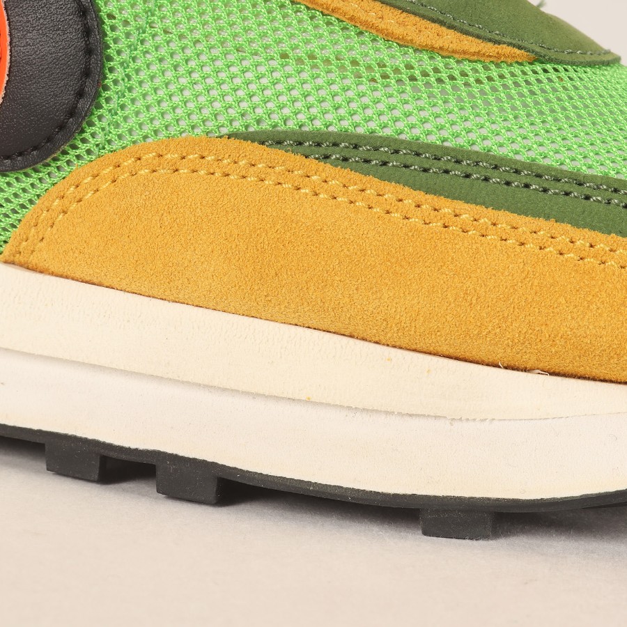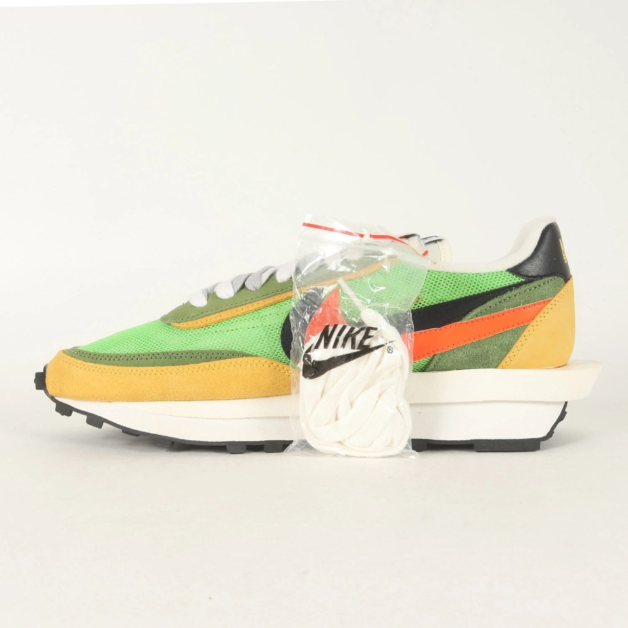 | 商品説明 | こちらは話題沸騰の“NIKE(ナイキ)”とのコラボシリーズです。モデルには名作ランニングシューズ“WAFFLE DAYBREAK“と“LDV”を組み合わせた“LDWAFFLE(エルディーワッフル)”を採用しています。二枚重ねのスウッシュやシュータン、はみ出したミッドソールなどをデザインしたスペシャルな一足になります。 |