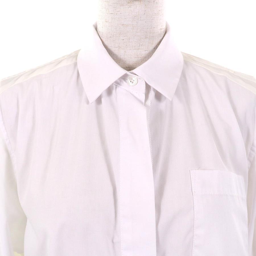 Sacai Short Sleeve Shirt with Puffy Sleeves and Docking, White Poplin, Polyester and Cotton, 22-06070