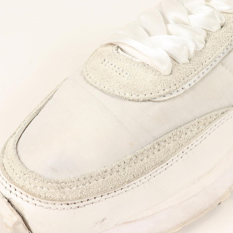 | 商品説明 | こちらは話題沸騰の“NIKE(ナイキ)”とのコラボシリーズです。モデルには名作ランニングシューズ“WAFFLE DAYBREAK“と“LDV”を組み合わせた“LDWAFFLE(エルディーワッフル)”を採用しています。二枚重ねのスウッシュやシュータン、はみ出したミッドソールなどをデザインしたスペシャルな一足になります。 |