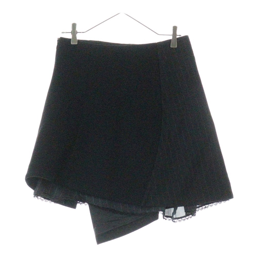 [モデル]サイドジップ ドッキング ストライプ柄 裾レース ウールスカート ブラック レディース 24-07410