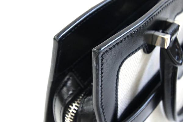 | 状態 | 外側:キャンバス部分薄汚れあり。レザーの所々に小キズ・薄スレあり。角にスリ減りあり。ショルダーのベルトループ(遊革)2ヶ所にステッチ切れあり。 内側:スレ、薄汚れあり。 金具:小キズ、スレ、クスミあり。 |