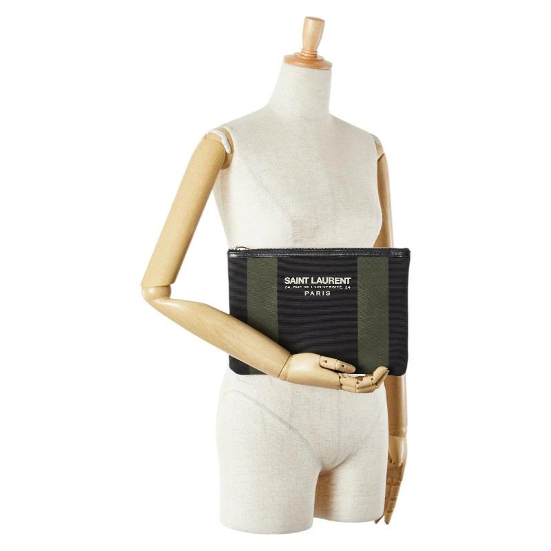 Saint Laurent Clutch Bag Pouch 414764 Black Khaki Canvas Leather Women's SAINT LAURENT [Pre-owned]