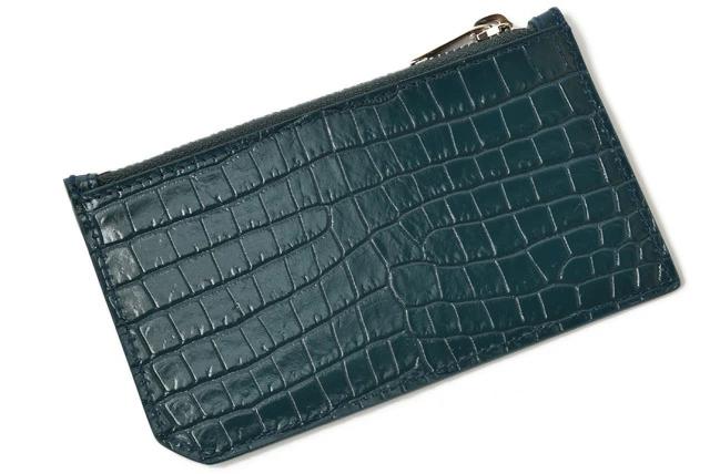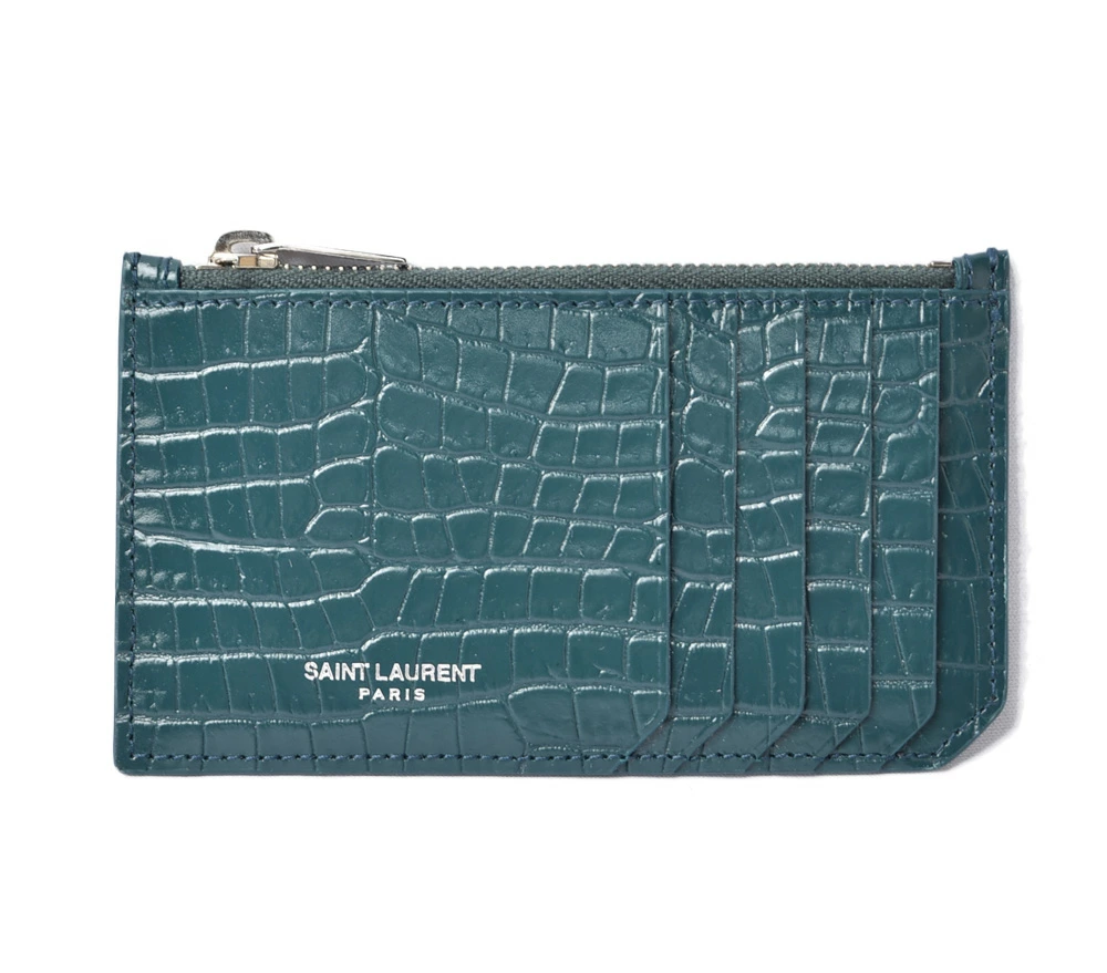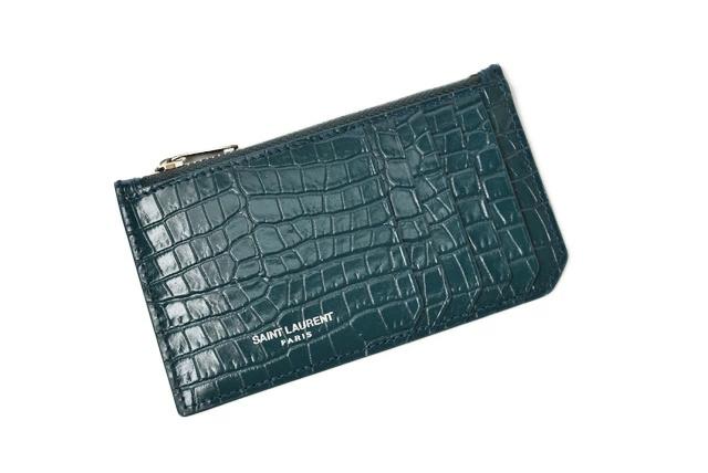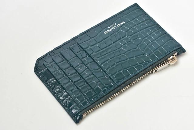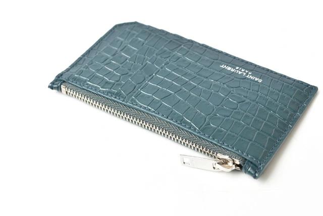 サンローランより、コインケース/カードケースです。クロコダイル柄を型押ししたレザーで、高級感があります。カードポケットが5枚もあり、多くなりがちなカードをすっきり収納できます。ファスナー付きで、コインの収納にも便利です。