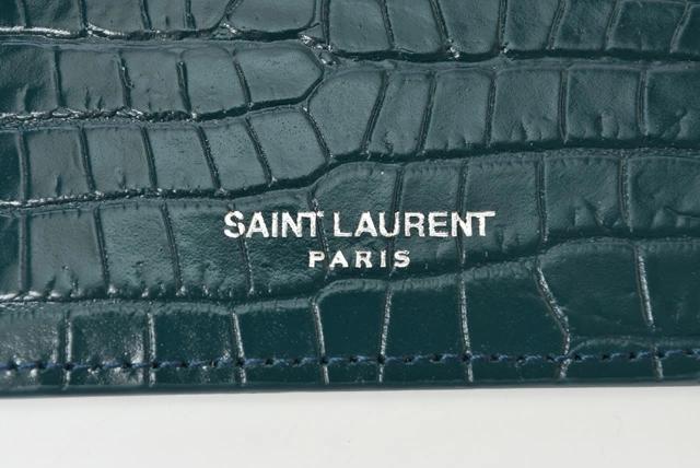 SAINT LAURENT シップポーチ タイニーモノグラム クロコ型押し ディープグリーン 458589