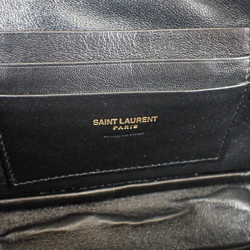 丸みを帯びたスクエアのフォルムにサンローランのアイコンであるゴールドのYSLメタルロゴがエレガントなアイテム。