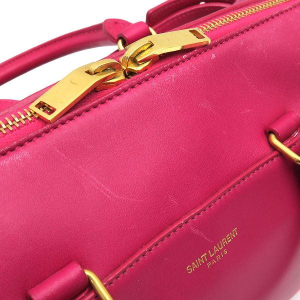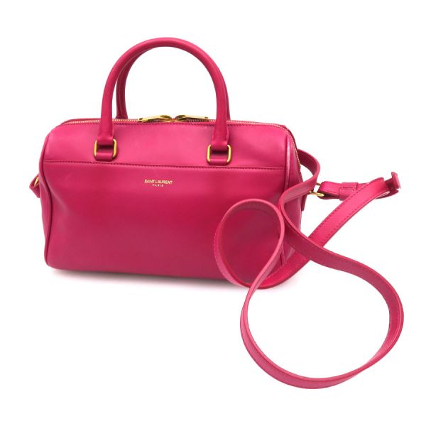 サンローラン・パリのベイビーダッフルが入荷しました☆ピンクカラー、コンパクトサイズがとっても可愛い1点でハンド、斜め掛けの2WAYタイプ♪間口はファスナー開閉式、内側にポケット×1あり、容量はありませんが、ちょっとしたお出掛けやサブバッグに最適です◎全体的にスレやシワがあり、型崩れ、四つ角スレ、多数の汚れ、ショルダーのシワやクセ、金具の小傷やくすみ、底鋲のメッキ剥げ、ハンドルの汚れ、コーティングの汚れ、糸のホツレ、内側には汚れ、シワ、スレ、収納臭等が御座います。使用感が感じられますが、その分お得なプライスとなっております。是非この機会にいかがでしょうか♪