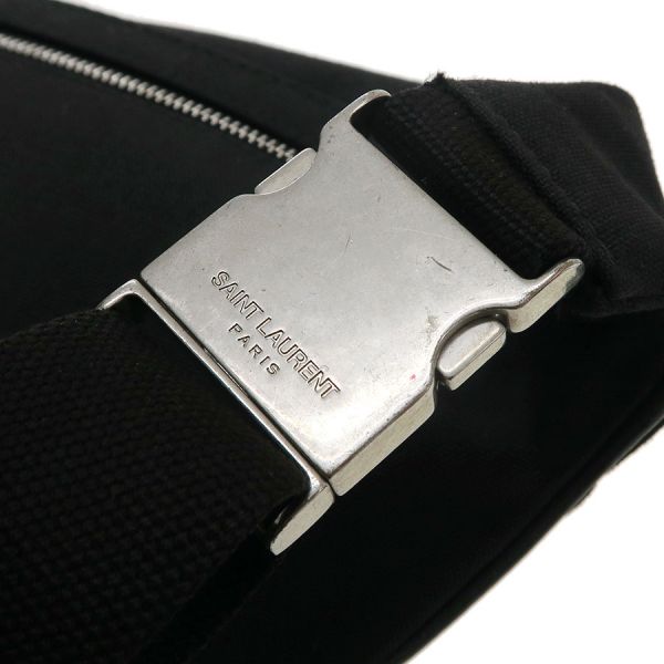 サンローラン・パリのベルトバッグのご紹介です!開閉はファスナー式。中はポケット1つ、カードポケット3つあり。背面にはファスナーポケット1つあり。ショルダー部分はホック根元で長さ調整可。★状態は、本体の型崩れ、表面のスレ・薄汚れ・色褪せ、角や縁のスレ、レザー部分やロゴプリントのスレ、ファスナーや金具の小傷・スレ・くすみ、中の薄汚れ・シワ、ショルダー部分の汚れ・金跡等がございますが、まだまだご使用頂けますよ!カジュアルな装いにマッチします!