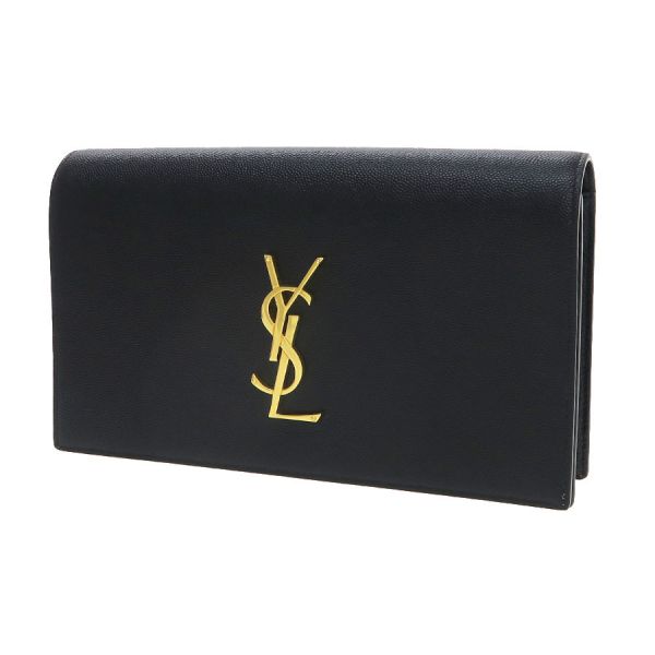 サンローランパリのクラッチバッグが入荷しました☆ ブラックレザーにYSL金具をあしらった高級感溢れる商品!内側はポケットのないシンプルなデザインでちょっとしたお出掛けやサブバッグ、パーティや華やかな席にもピッタリのアイテムです!表面と内側の薄汚れ、角等の縁に少々のスレ、金具の小傷くすみはございますが、まだまだキレイ目なコンディション♪1つあれば便利な人気のクラッチバッグとなりますので是非お問い合わせ下さい!!