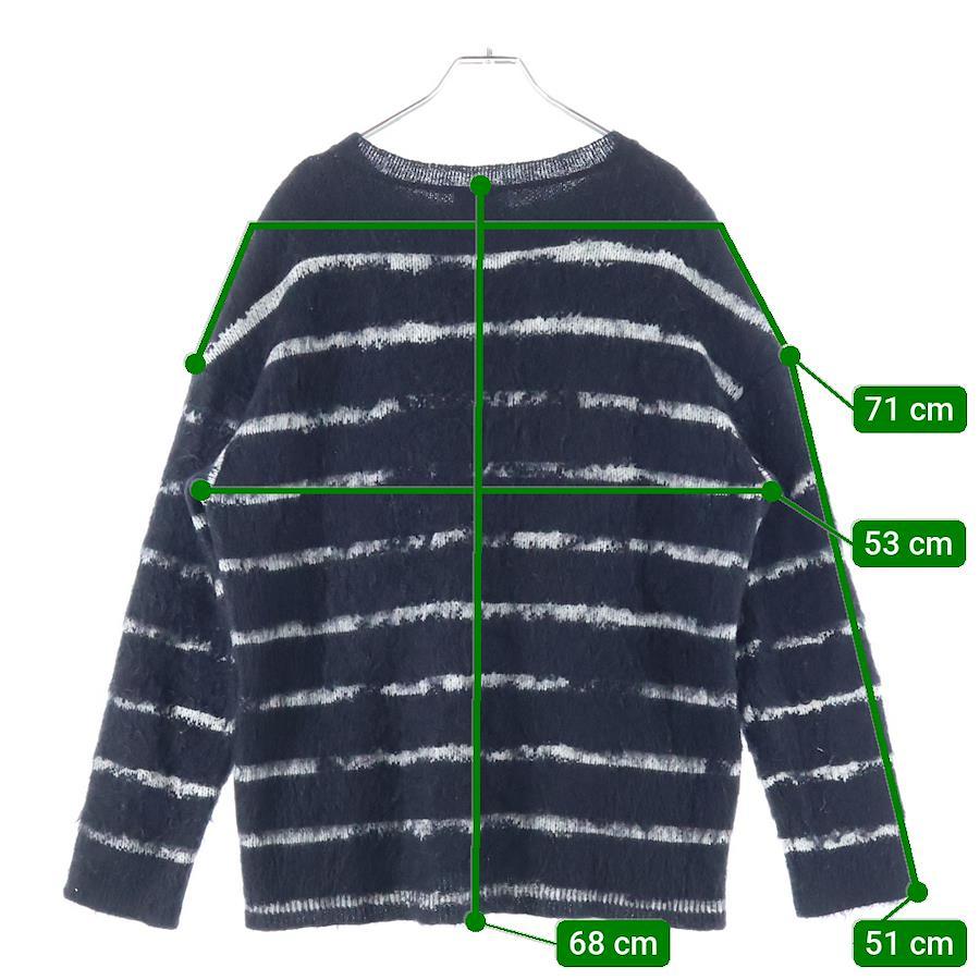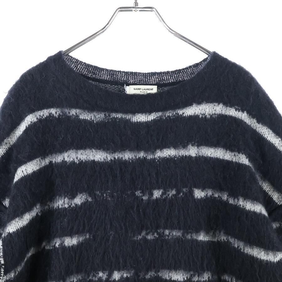 [モデル]Interrupted Striped Mohair Blend Pullover ボーダー クルーネックモヘアニット ブラック 663411 Y75BX