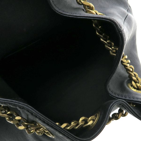 サンローラン・パリのジョー・バックパックのご紹介です!本体下部はV字ステッチデザインで、正面マグネット開閉式ポケットのフラップにはYSLの金具飾りあり。間口のハトメ金具にはショルダー上部のチェーンが通してあります。ショルダー下部はバックルで5段階調整のできるベルト地になっています。中はファスナーポケット1つあり。☆状態は、本体の型崩れ、表面のスレ・小傷・シワ・薄汚れ、角や縁のスレ、チェーンやマグネット、金具の小傷・くすみ・メッキ剥げ、中のスレ・薄汚れ・香水臭、ショルダー部分の縁のひび割れがございますが、まだまだ綺麗にお使い頂けますよ!いかがですか!?