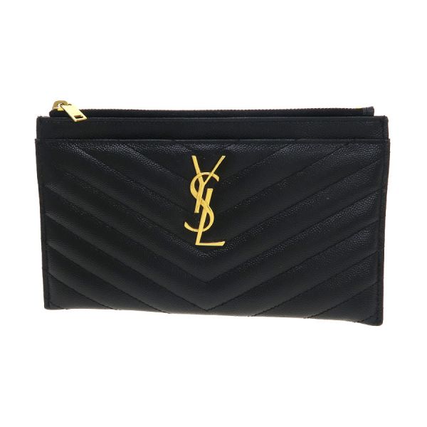 サンローラン・パリのレザーポーチのご紹介です!V字のステッチが前後に施され、正面にはYSLのマークの金具飾りあり。開閉はファスナー式。中はポケット等無し。マチ無し。正面にはポケット1つあり。☆状態は、本体の型崩れ、表面のスレ・薄汚れ、角や縁のスレ、ファスナーや金具部分の小傷・くすみ、中の薄汚れが見受けられますが、きれい目なお品ですよ!いかがですか!?