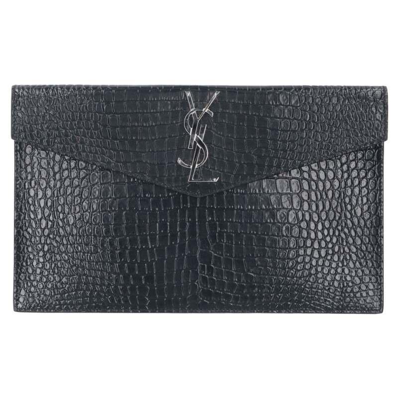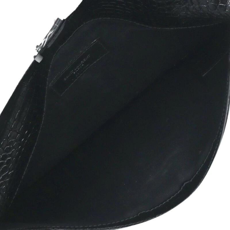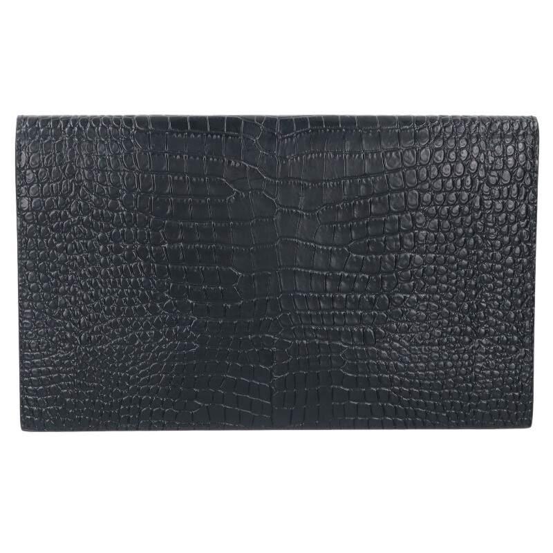 SAINT LAURENT PARIS Logo Plate Crocodile Embossed Clutch Bag (Black x Silver) [402152] [BS99] [Accessories] [Pre-owned] bb428#rinkan*A