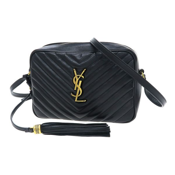 サンローランパリ・ルー カメラバッグご紹介です☆ スクエアフォルム、間口は開閉式、内スリット×1あり、ブラックレザーにVステッチ、YSL金具がデザインされたエレガントな商品で斜め掛けタイプで普段使いに最適です♪少々の型崩れ、表面と内側の薄汚れ、ショルダーや角等の縁にスレが少々、金具の小傷くすみ、メッキ剥げが少々、香水臭もやや感じますが、まだまだキレイ目でこれからも長く愛用出来ますよ!是非お問い合わせ下さい!!