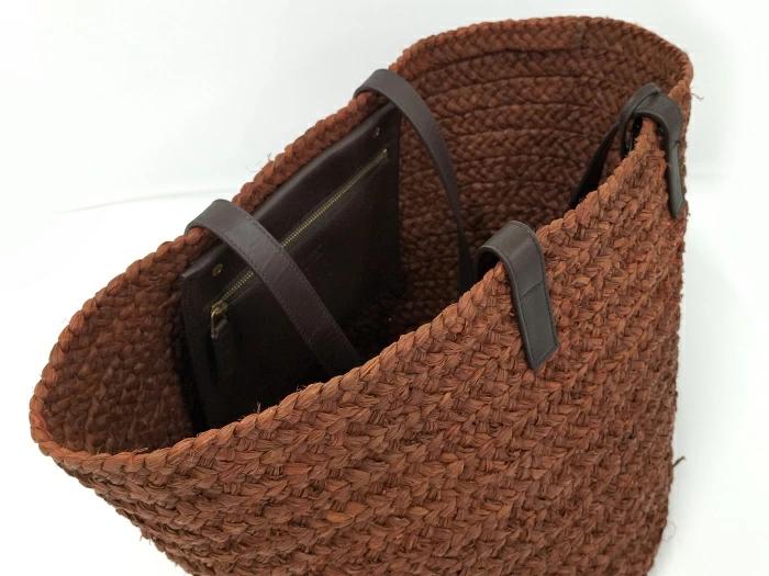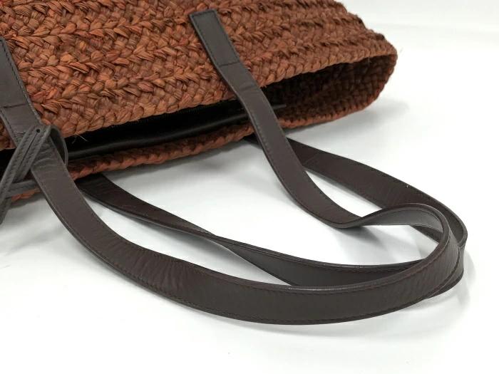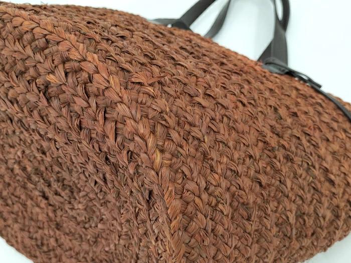 [商品情報]・カラー:ブラウン・素材/ライン:ラフィアレザー・サイズ:最大約 W上46下27×H28×D28(cm)・ショルダーの長さ:最大約52(cm)※多少の誤差はご了承下さい。
