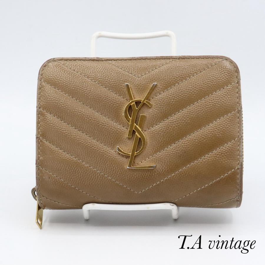 品名 サンローラン パリ YSL Vステッチ 財布 ベージュ ゴールド金具