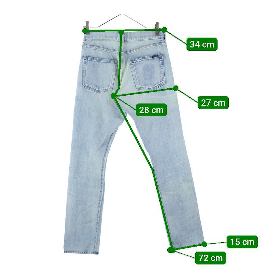 [サイズ]ウエスト:34センチ ワタリ:27センチ 股上:28センチ 股下:72センチ 裾幅:15センチ