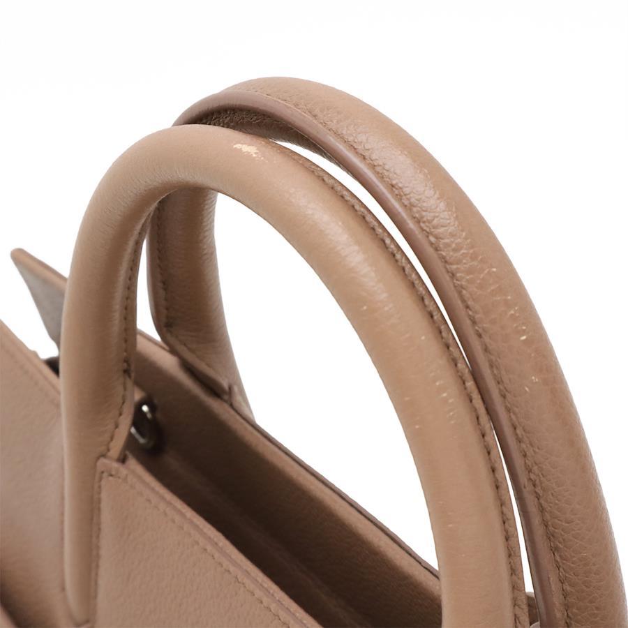 【コンディション】[外側]若干の型崩れ、ポケット内圧痕、薄汚れ、背面スレ[内側]シミ、スレ、若干の毛羽立ち[ハンドル]スレ、コバヒビ[ショルダー]コバヒビ[金具]底鋲スレ