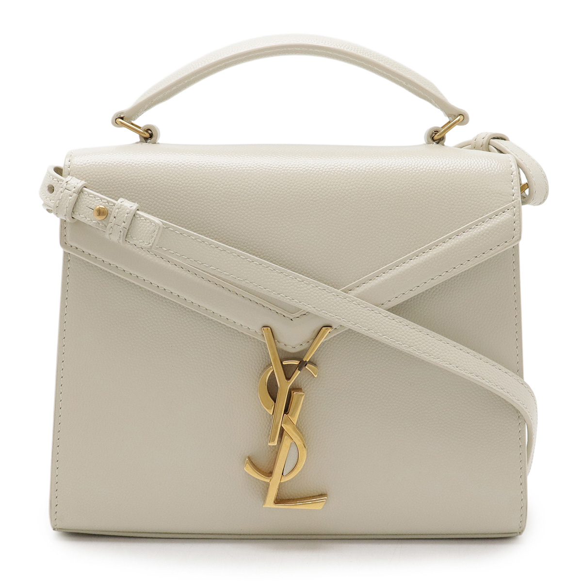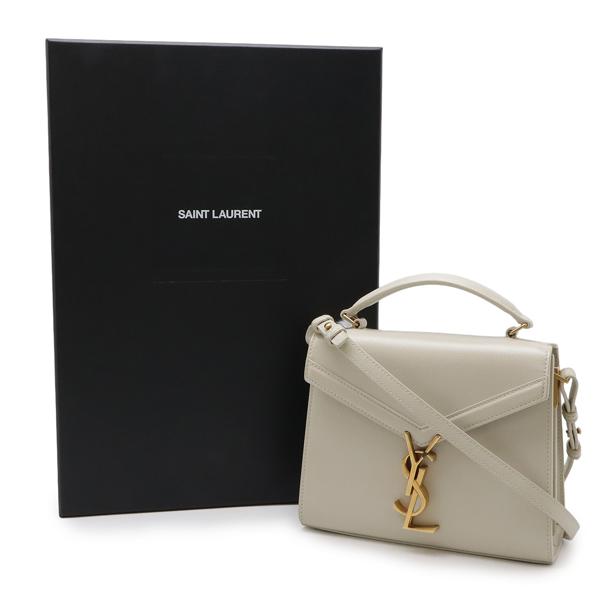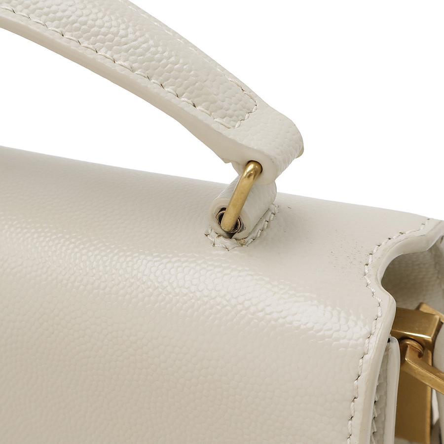 SAINT LAURENT PARIS Yves Saint Laurent Cassandra Mini Handbag with Top Handle and 2-Way Shoulder Strap, White Leather, 623930