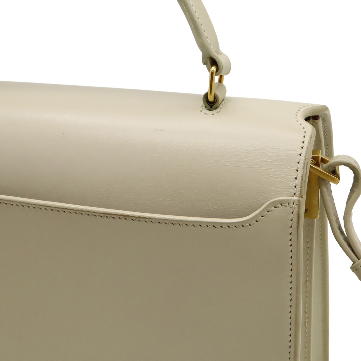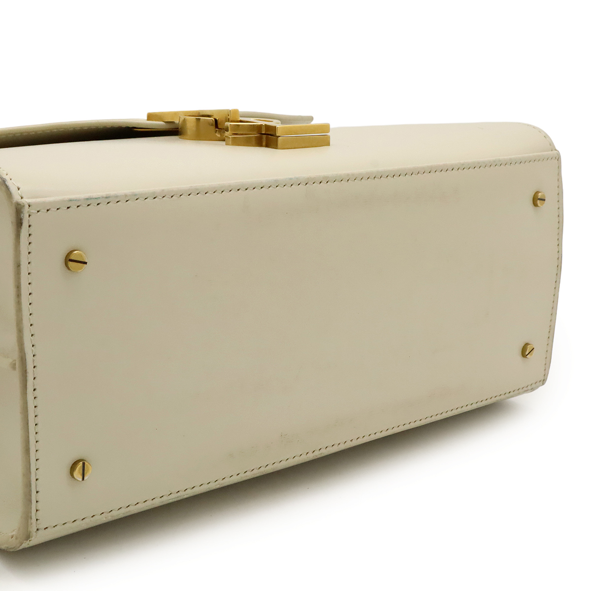 SAINT LAURENT PARIS Yves Saint Laurent Cassandra top handle handbag with 2-way shoulder strap in white leather (578000)