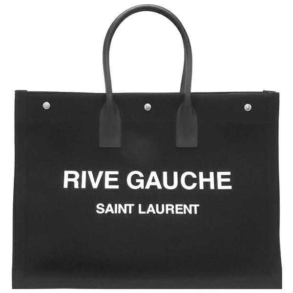 サンローラン SAINT LAURENT トートバッグ リヴ ゴーシュ リヴゴーシュ コットン レザー ブラック 黒 RIVE GAUCHE シルバー金具 499290 メンズ 【保存袋】定番 人気 美品 【中古】
