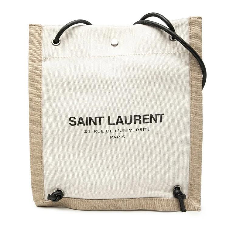 - サンローラン ショルダーバッグ ナップサック 710272 ホワイト ベージュ キャンバス レザー レディース SAINT LAURENT 【中古】