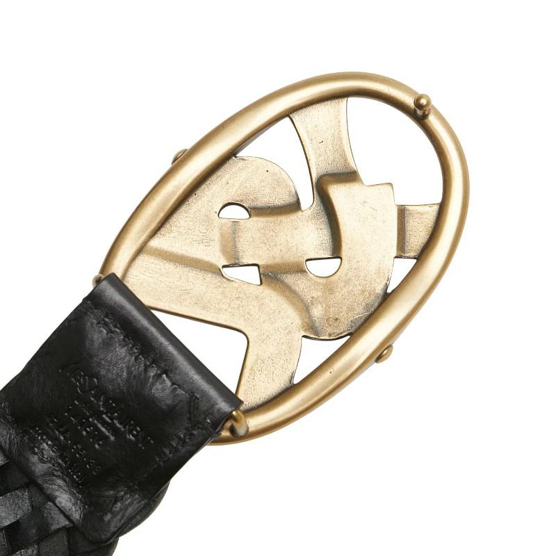 Saint Laurent YSL Logo Buckle Belt, Size: 95/38, 141516, Black and Gold Plated Leather, Men's, Pre-owned