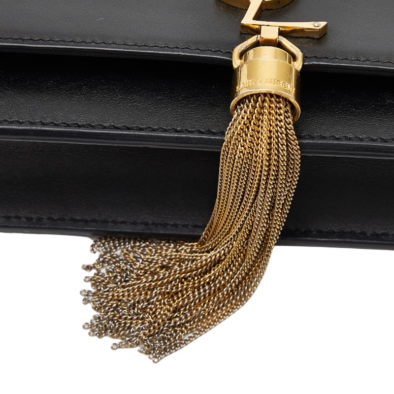 - サンローラン YSLロゴ タッセル チェーン ウォレット ショルダーバッグ 452159 ブラック レザー レディース SAINT LAURENT 【中古】