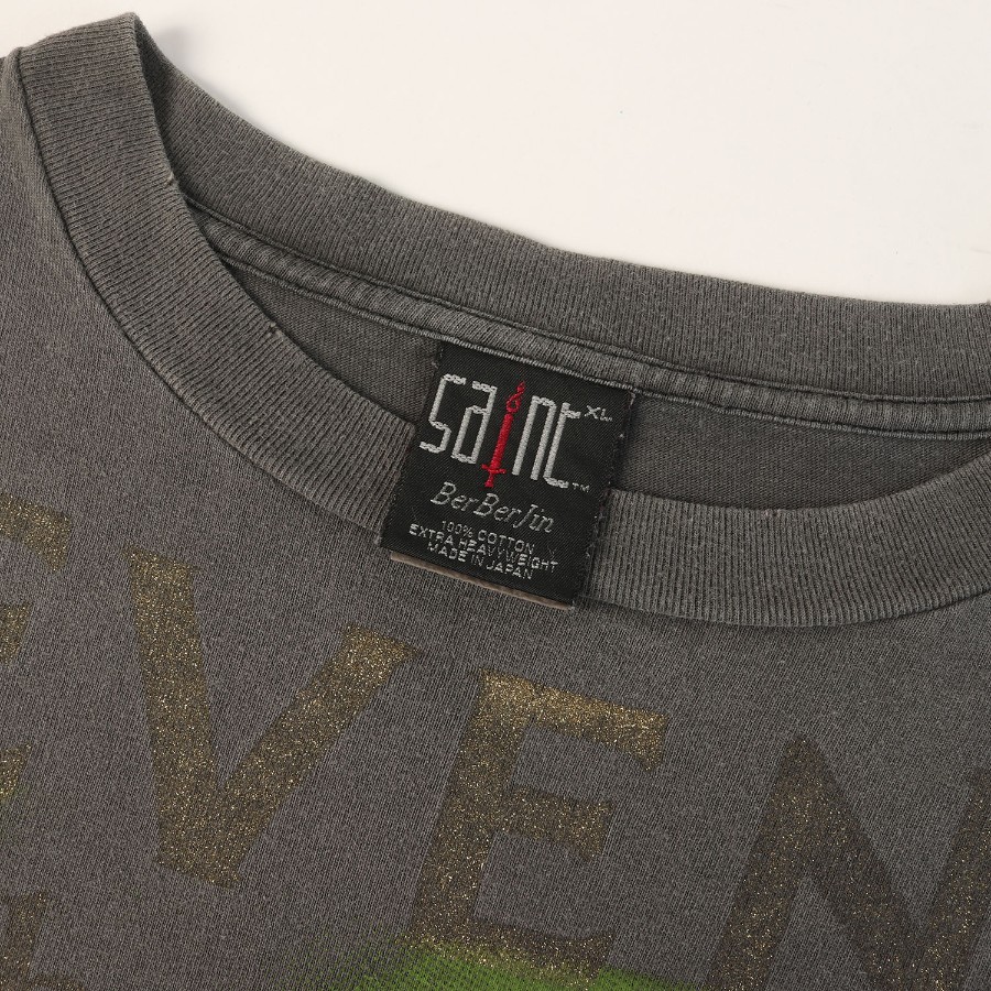 | 商品説明 | 原宿の有名ヴィンテージショップ“BerBerJin”と音楽グループ“GReeeeNのリーダーHIDE”とのコラボアイテムです。HIDE所有のヴィンテージTシャツをモチーフにしたグラフィックをあしらい、ハードなヴィンテージ加工を施したルーズシルエットTシャツになります。 |