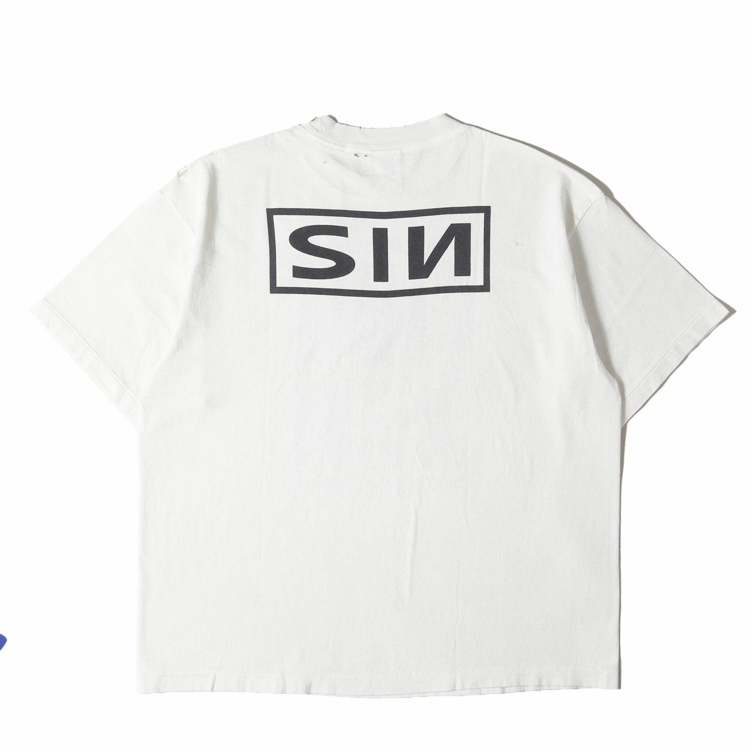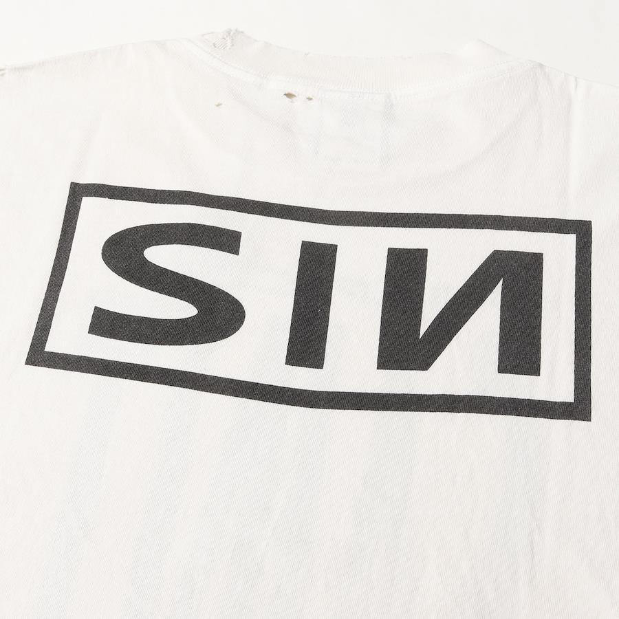 | 商品説明 | ハードなヴィンテージ加工を施したルーズシルエットのクルーネックTシャツです。バックにアメリカのバンド”Nine Inch Nails”のパロディーロゴがデザインされております。 |