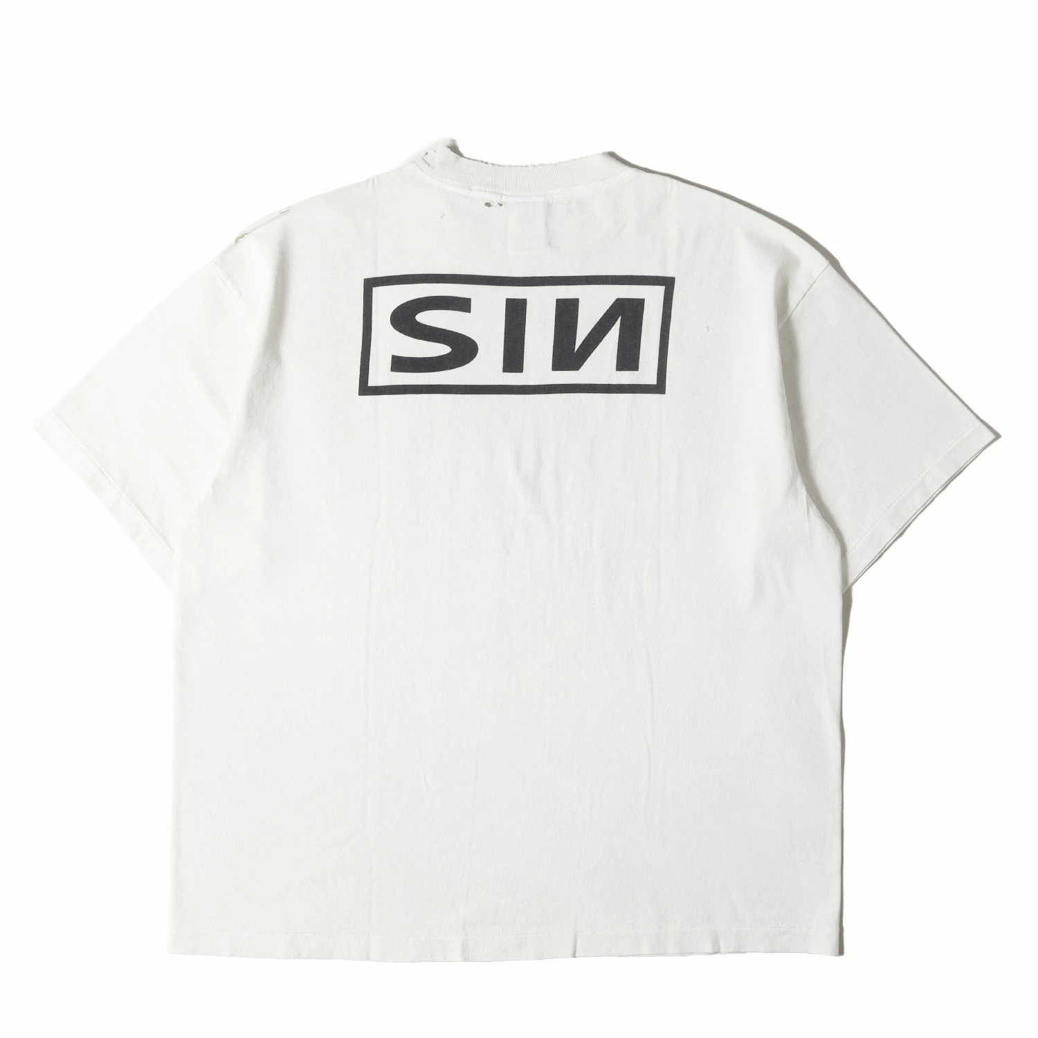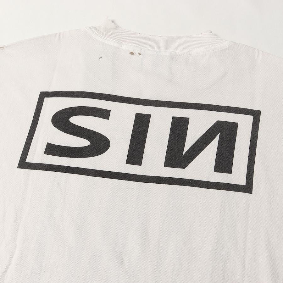 | 商品説明 | ハードなヴィンテージ加工を施したルーズシルエットのクルーネックTシャツです。バックにアメリカのバンド”Nine Inch Nails”のパロディーロゴがデザインされております。 |