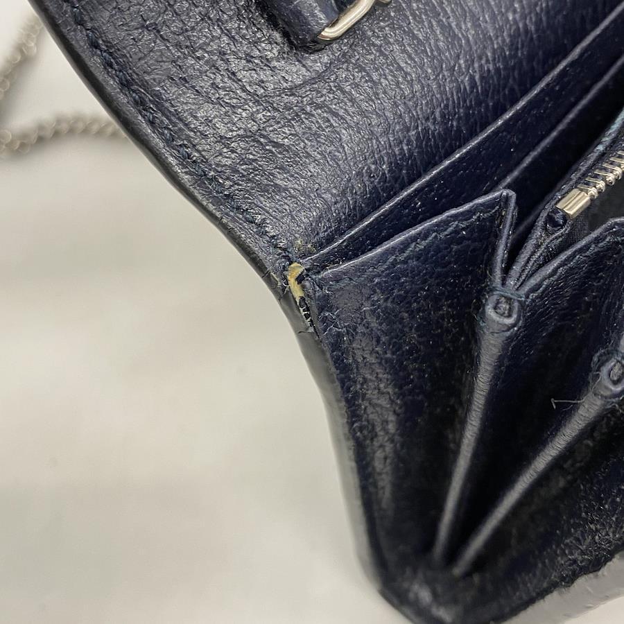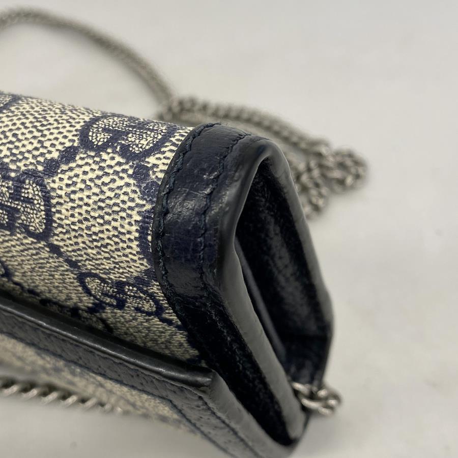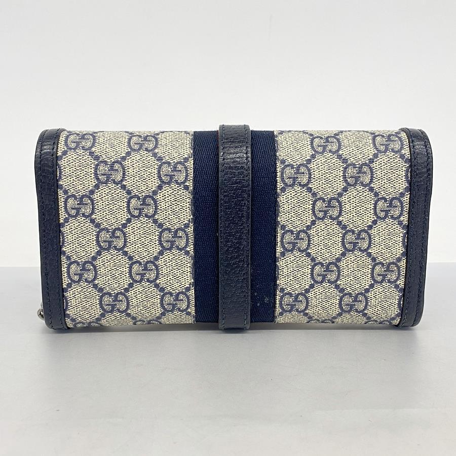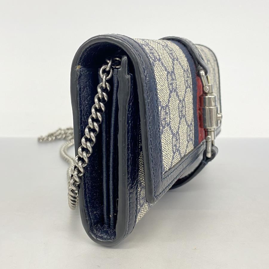 ★SALE【5ib1365-h】グッチ ショルダーウォレット GGスプリーム/シェリーライン ジャッキー 652681 PVC ベージュ ネイビー シルバー金具【中古】レディース