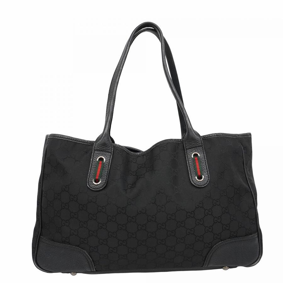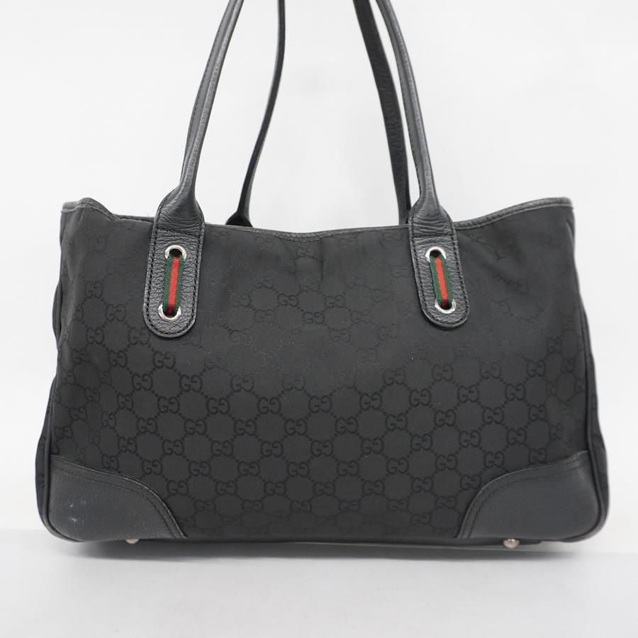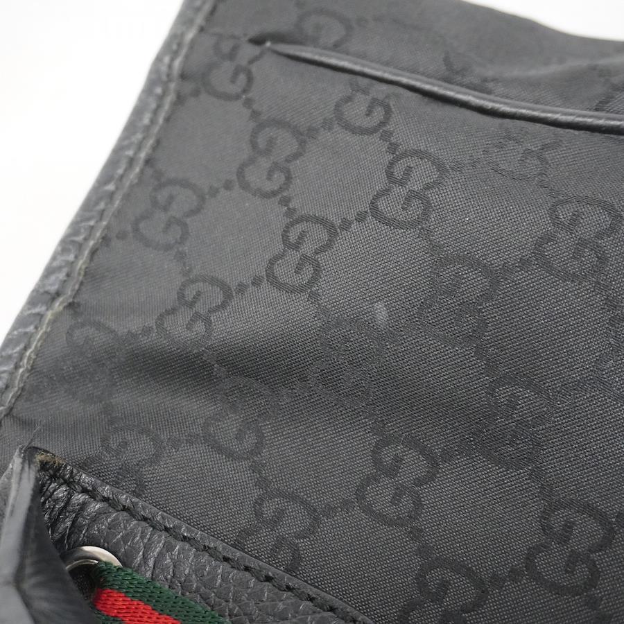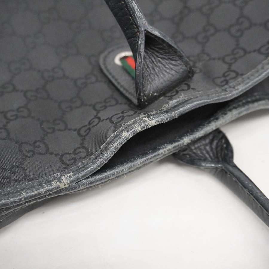 ★SALE【5ib1581-h】グッチ トートバッグ GGナイロン シェリーライン 293592 ナイロン ブラック シルバー金具【中古】レディース