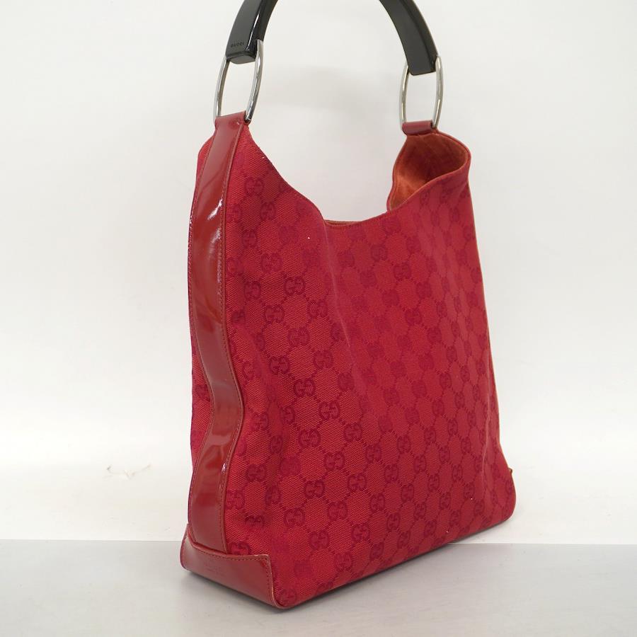 ★SALE【5ib2550-h】グッチ ハンドバッグ GGキャンバス 001 3752 キャンバス レッド ブラック シルバー金具【中古】レディース