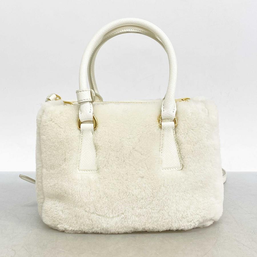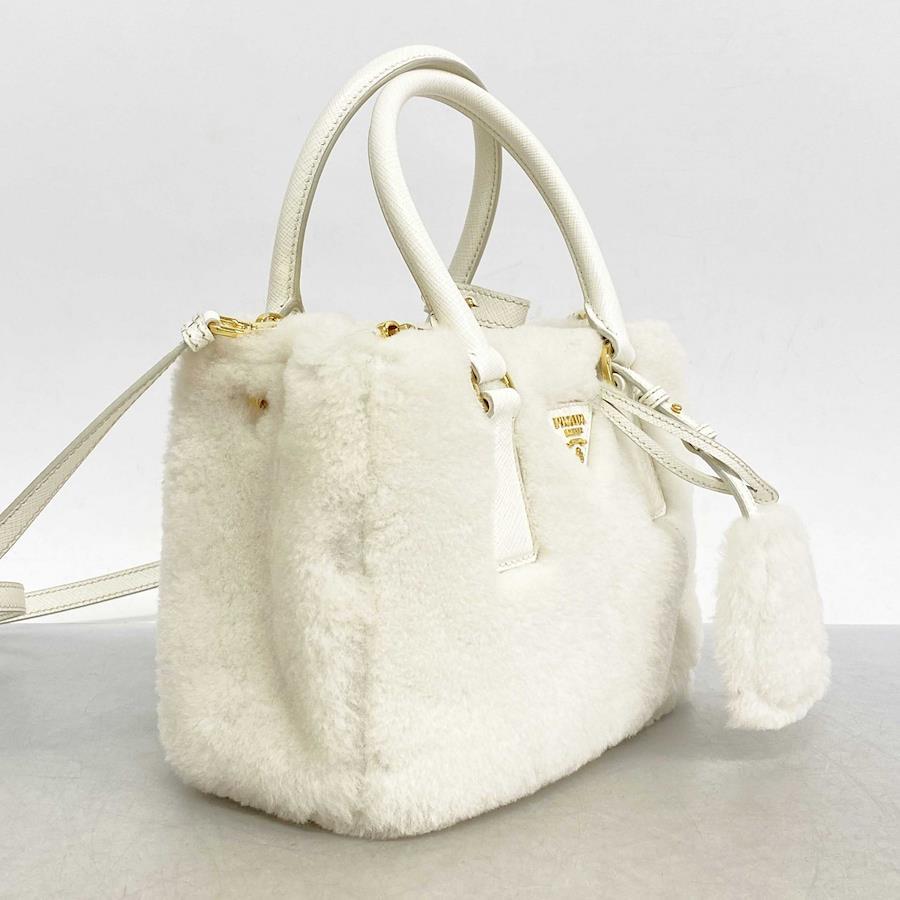 ★SALE【5ic4048-h】プラダ ハンドバッグ ガレリア レザー ファー ホワイト ゴールド金具 2wayバッグ【中古】レディース