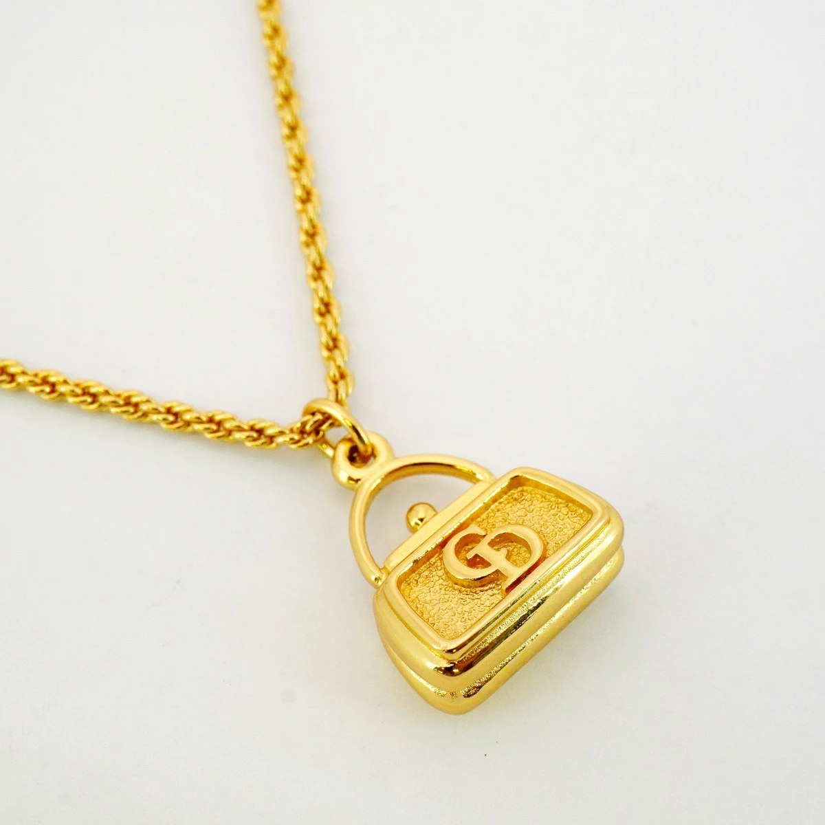 ★SALE【5jib0740】クリスチャンディオール ネックレス CDロゴ バッグモチーフ GPメッキ ゴールド【中古】レディース