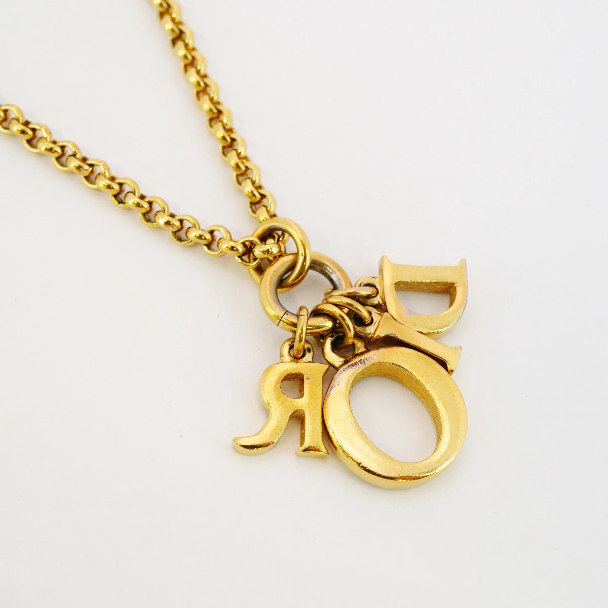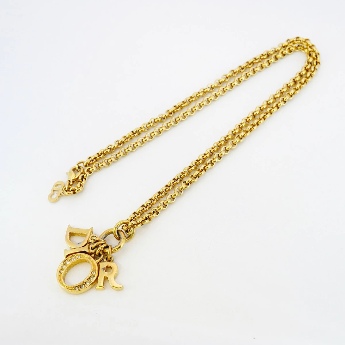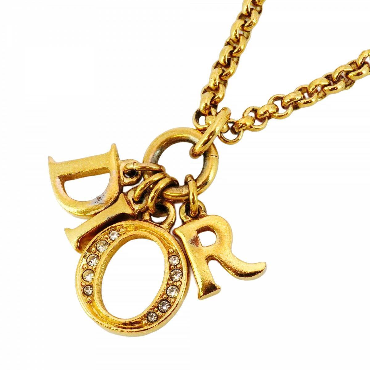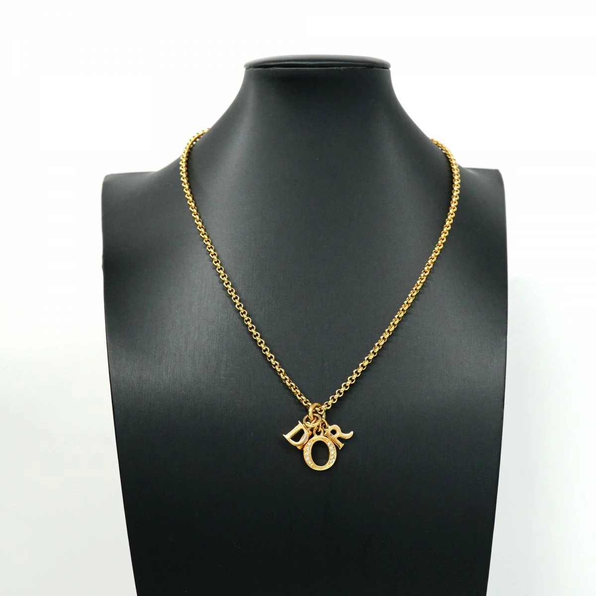 ★SALE【5jib0810】クリスチャンディオール ネックレス ディオールロゴ GPメッキ ラインストーン ゴールド【中古】レディース