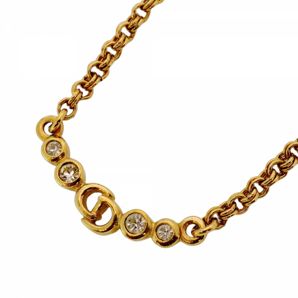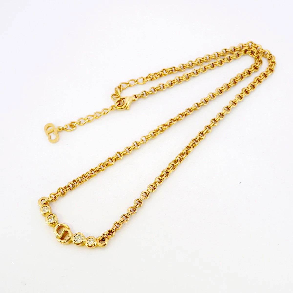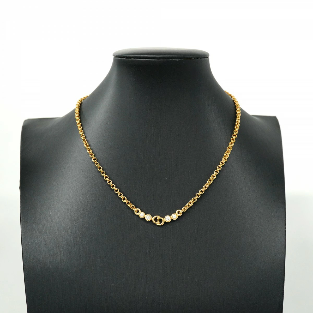 ★SALE【5jmb0005】クリスチャンディオール ネックレス CDロゴ GPメッキ ラインストーン ゴールド【中古】レディース