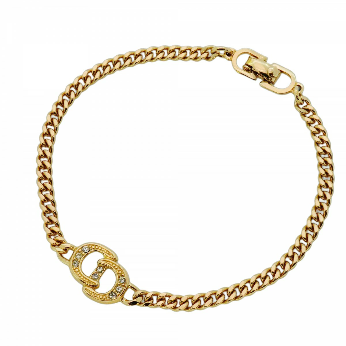 ★SALE【5jmb0180】クリスチャンディオール ブレスレット CDロゴ GPメッキ ラインストーン ゴールド【中古】レディース