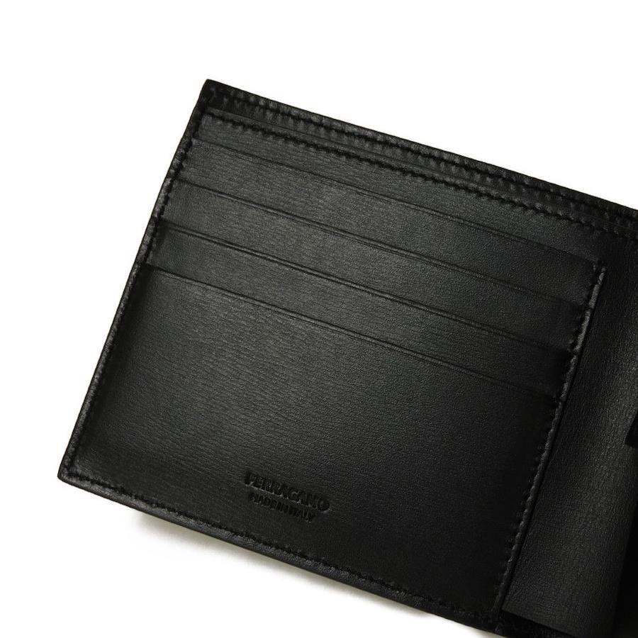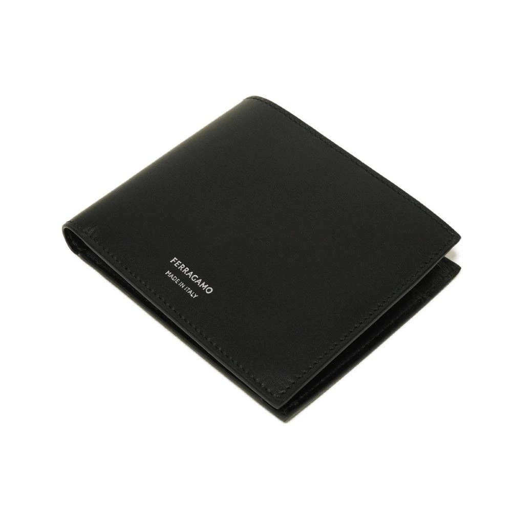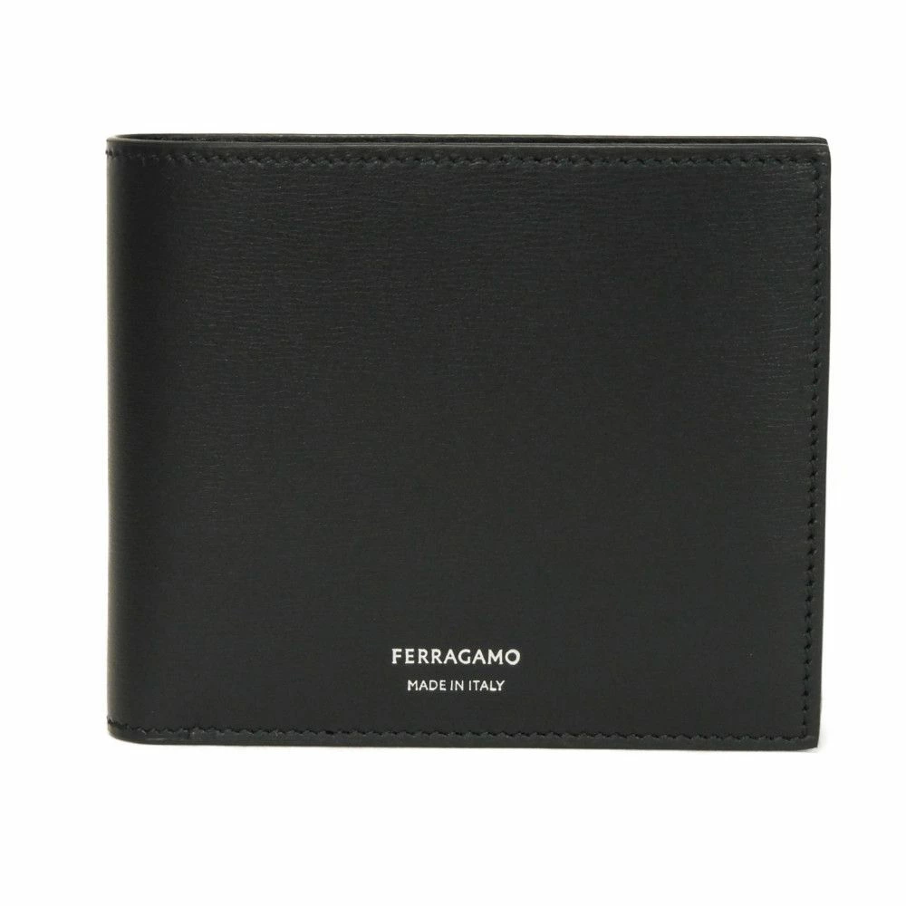 | スムースレザーにフェラガモの箔押しロゴがあしらわれた「バイフォールド ウォレット」二つ折り財布です。 |