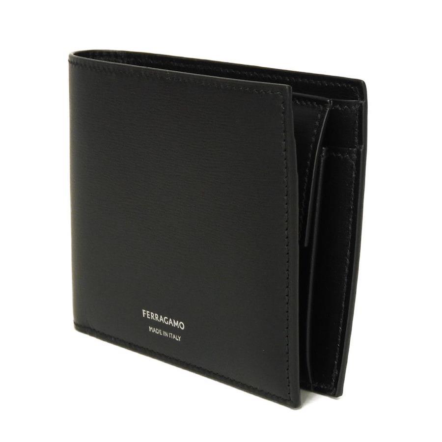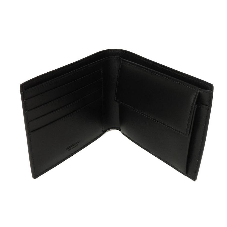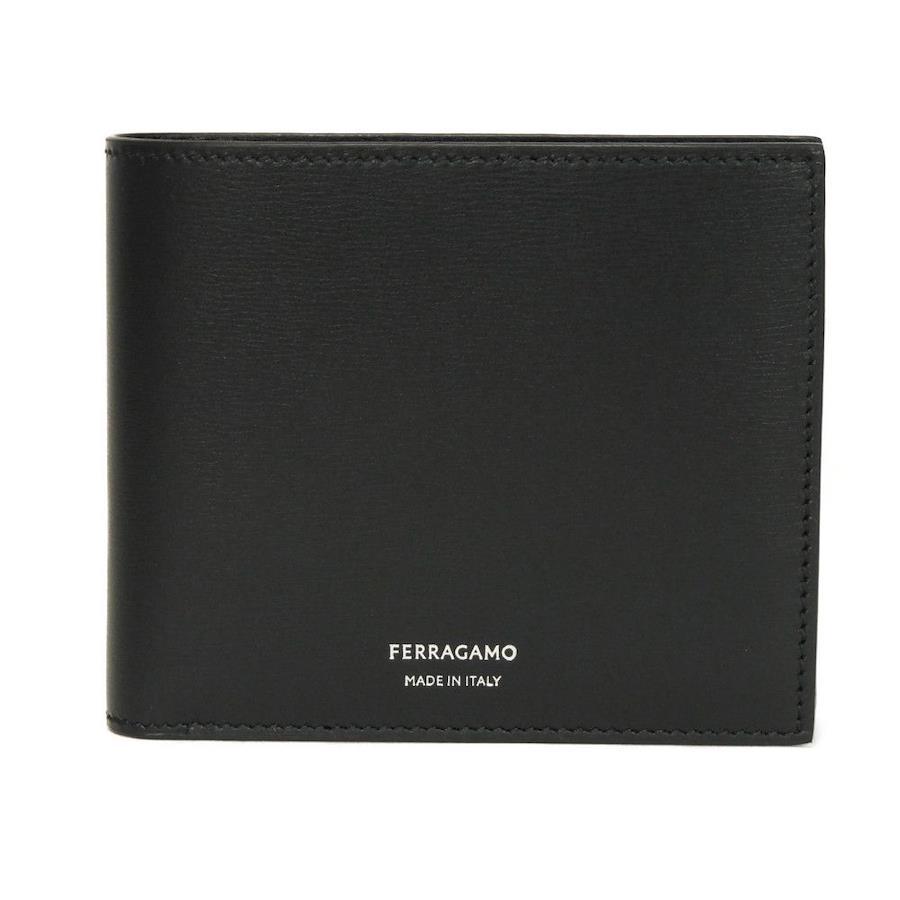 スムースレザーにフェラガモの箔押しロゴがあしらわれた「バイフォールド ウォレット」二つ折り財布です。