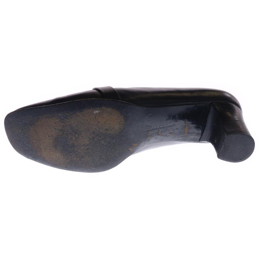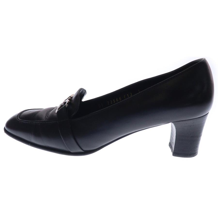 [モデル]バックル スタックドヒール レザー ローファー レディース ブラック