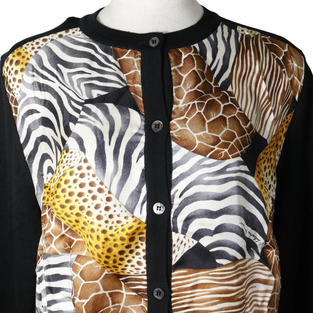 Salvatore Ferragamo Cardigan 136180843, Cotton and Silk, Made in Italy, Black, Leopard Print, Women's, Pre-owned, A+ Rank