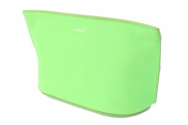 Salvatore Ferragamo clutch bag, size 24, 1390, light green leather, pre-owned, with pouch and logo. Women's.