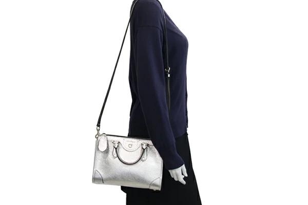 フェラガモ2WAYハンドバッグガンチーニ210388シルバーレザー中古ショルダーバッグ斜め掛けロゴレディースSalvatoreFerragamo