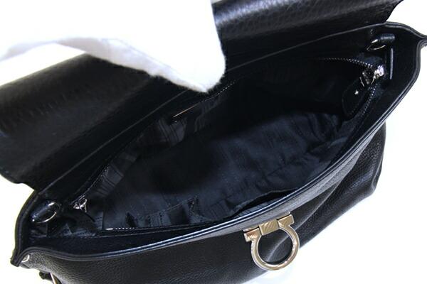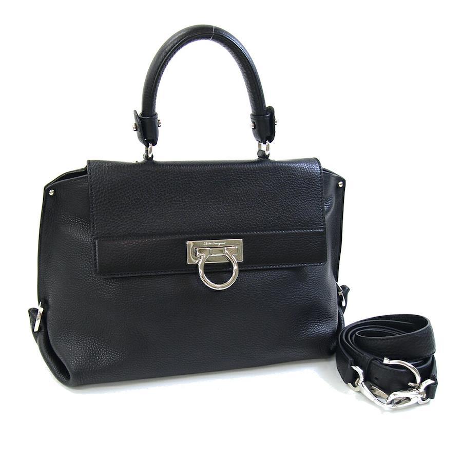 フェラガモ2WAYハンドバッグガンチーニソフィア21A896ブラックレザー中古ショルダーバッグワンハンドル斜め掛け肩掛けレディースSalvatoreFerragamo