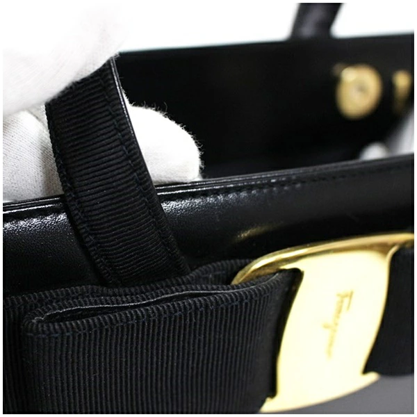 商品名サルバトーレフェラガモ ハンドバッグ レザー ヴァラリボン ブラック ゴールド金具 中古 ABランク Salvatore Ferragamo