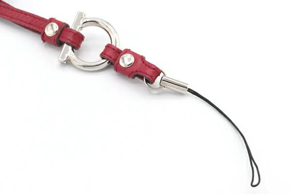 フェラガモネックストラップガンチーニレッドレザーメタル中古首掛け携帯ストラップファッション小物レディースSalvatoreFerragamo