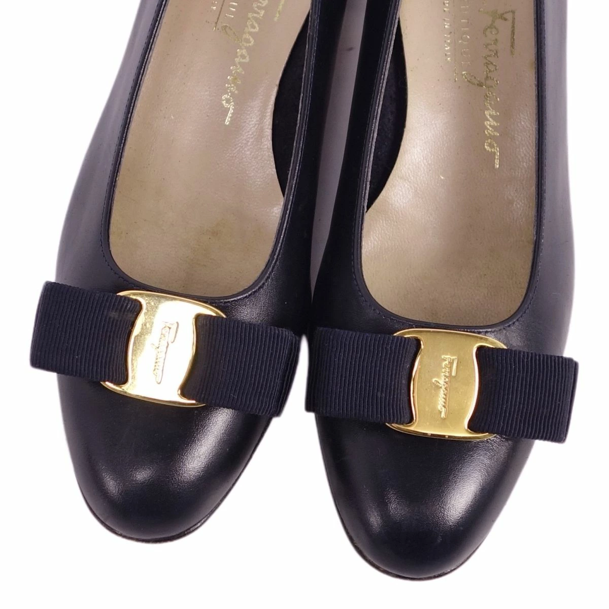 ■商品名サルヴァトーレ フェラガモ Salvatore Ferragamo パンプス ヒール ヴァラ カーフレザー シューズ レディース ネイビー サイズ5.5C(23cm相当)■状態説明・上質なカーフレザーを贅沢に使用した、Salvatore Ferragamoのパンプスです♪・落ち着いたカラーリングにアイコニックなヴァラリボンが目を引く一足です◎・イタリア製・全体に汚れが御座いますが、ご使用に差し支えるものはなくまだまだお使い頂ける状態です!・トップリフト交換済み【季節感:オールシーズン】【付属品:箱】■素材カーフレザー■カラーネイビー■表記サイズ5.5C(23cm相当)■実寸サイズヒール:約3.5cm幅:約7.5cmインソール全長:約23.5cm■状態ランクB 傷や汚れがあるが、まだまだ使用可能な状態■店舗管理番号cf04mt-rm11f09573womens_navy