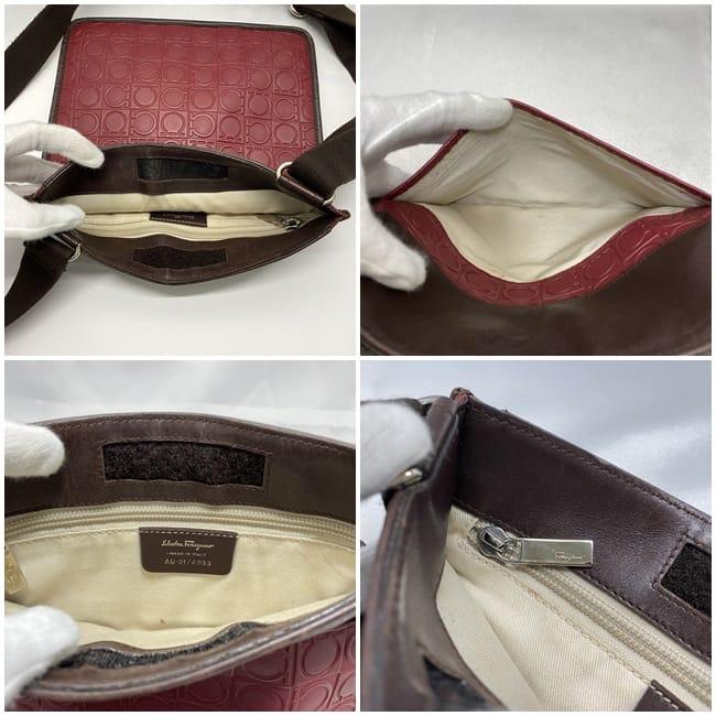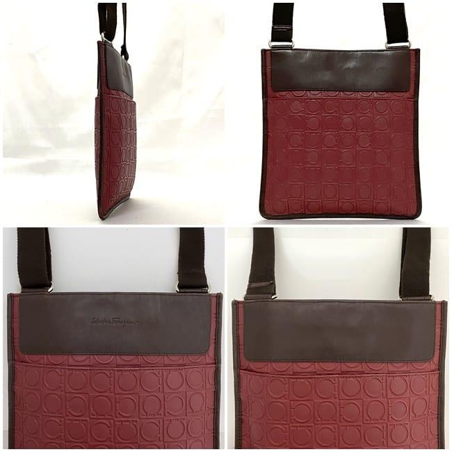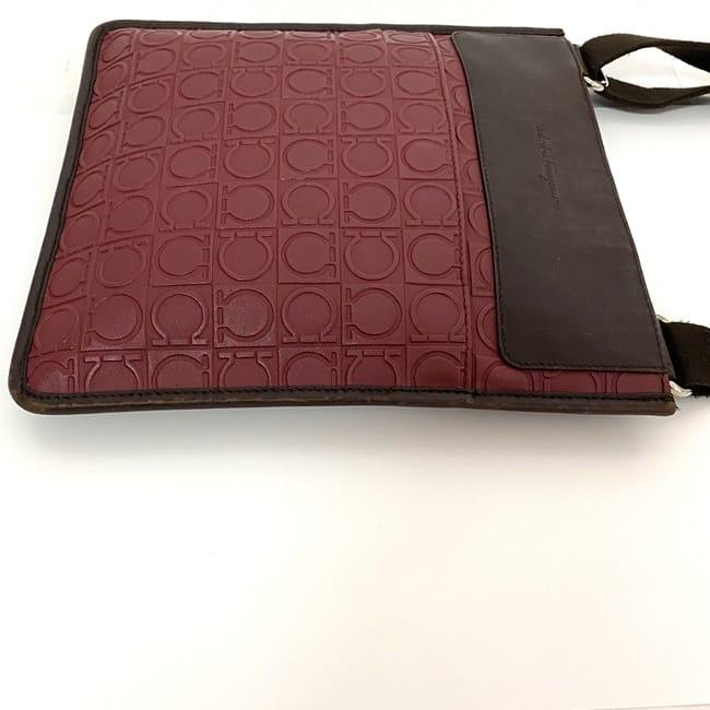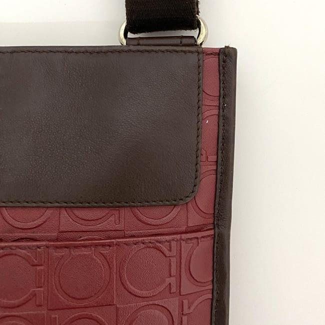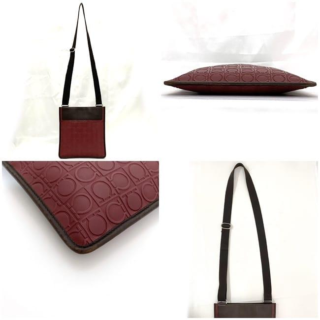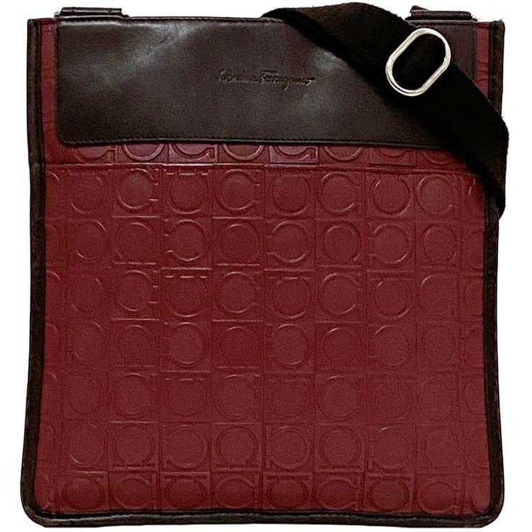サルヴァトーレ フェラガモ ショルダーバッグ ec-23353 ボルドー ブラウン ガンチーニ 美品 レザー 中古 AU-21 4933 Salvatore Ferragamo クロスボディ マジックテープ サコッシュ 定番 人気 レディース 薄い バッグ お洒落 高級感 上品 ブランド 本物 鑑定済み